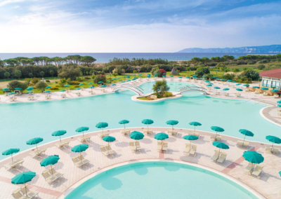 SERVIZI: ricevimento con ampia zona accoglienza, grandi spazi verdi, centro congressi con sale eventi e meeting modulari fino a 750 posti platea, sala TV, bar-gelateria, spiaggia attrezzata con ombrelloni e lettini, piano bar, bazar con rivendita anche di giornali, tabacchi e souvenir, parco giochi, miniclub, Sport: parco piscine per adulti e bambini, attrezzato con vasca idromassaggio, solarium con docce, ombrelloni e lettini; campi da basket, calcetto, tennis, bocciodromo, ping-pong, beach volley, palestra con attrezzature Technogym.