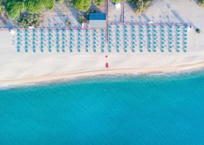 MARE: Spiaggia, ampissima, lunga diversi chilometri, di sabbia dorata, distante 250 m dal Club Hotel Marina Beach, raggiungibile mediante viali interni privi di barriere architettoniche, a 150 m dal parco piscine, attrezzato con un ombrellone e due lettini per camera indipendentemente dal numero di occupanti (prima e seconda fila a pagamento). Importante e comodo Beach Bar, con annessi servizi igienici, cabine spogliatoio e docce, situato a pochi passi dalla concessione balneare privata del Resort.